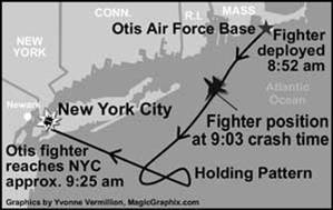 Les avions de chasse n'ont pas été complètement absents, mais ils ont été volontairement paralysés par des ordres contradictoires émis grâce aux « taupes » infiltrées au contrôle aérien tant civil que militaire. De surcroît, ils étaient en nombre très réduit en raison des nombreuses manoeuvres aériennes qui avaient été opportunément prévues ce jour-là...